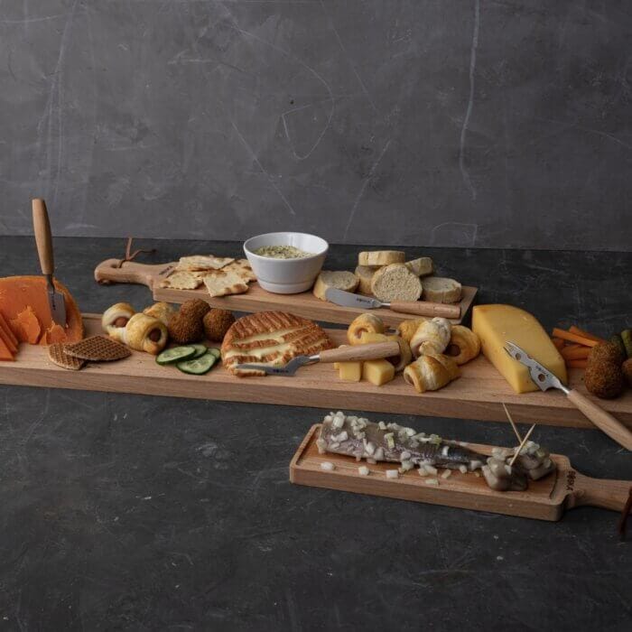 This five-piece Boska mini cheese knife set is perfect for all your cheeseboards – from soft, gooey Brie to firm, nutty Cheddar, spreadable lush chèvre to fudgy Gruyère. The beechwood handles sit comfortably in your hand, and the non-stick stainless steel blades make slicing, spreading, and serving feel effortless and look beautiful on the table.