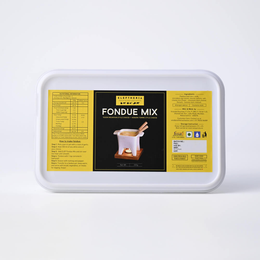 Our Limited Edition Fondue Mix blends two of our best-selling cheeses into a ready-to-melt classic. Yeoor brings nutty, fruity flavour and a velvety pull, while Konark adds earthy, savoury depth. The result is a rich, well-balanced fondue that pairs effortlessly with crusty bread, roasted vegetables or crisp apples. Perfect dish for your dinner party this festive season.