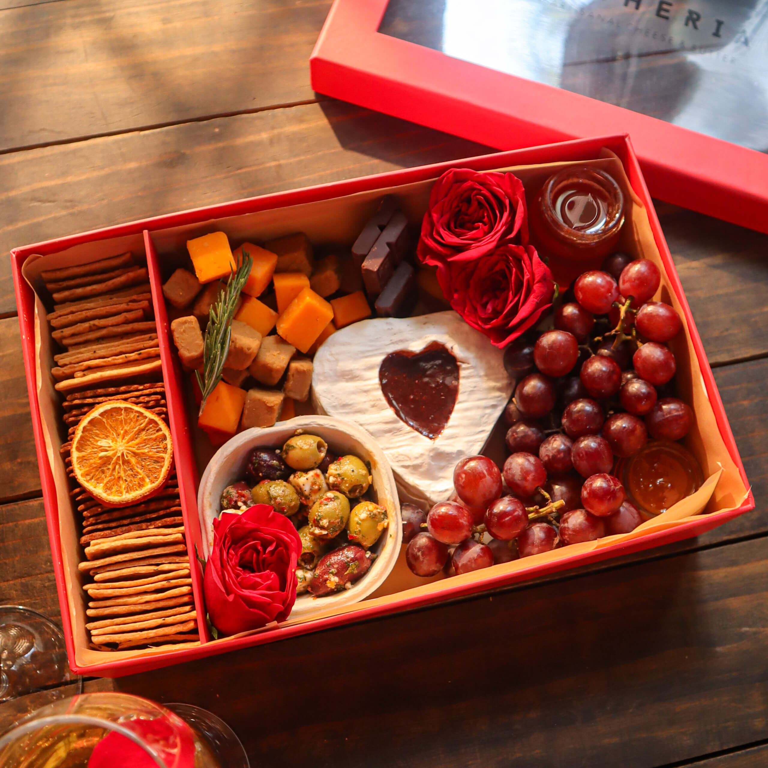 Introducing our Valentine’s Edition – ‘Will You Brie Mine’ Platter Box, thoughtfully curated for an intimate date with your loved one. Indulge in the lush, decadent Gulmarg Strawberry Double-Crème Brie gâteau, paired with mature Cheddar, handcrafted crackers, our house-made wild forest hot honey, dark chocolate, marinated olives with feta, and seasonal fruits.